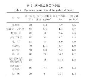 過濾風速到底和廢氣溫度、煙粉塵濃度有何具體關系,我們可從實驗上加以研究,表2是作者為各行業設計的除塵器的工作參數表(僅選取了除塵效率在9919%以上的設備或出口排放濃度小于30mg/Nm3的設備)。